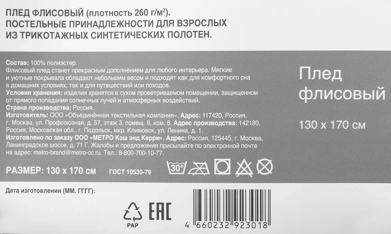 Tarrington House Плед флисовый темно-серый, 130 х 170см