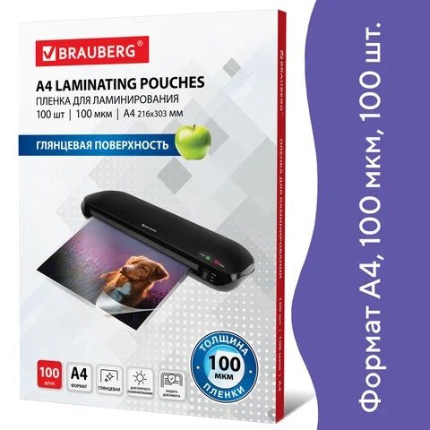 Пленка для ламинирования Brauberg 100мкм, 100шт, 216х303мм, глянцевая