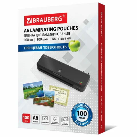 Пленка для ламинирования Brauberg 100мкм, 100шт, А6