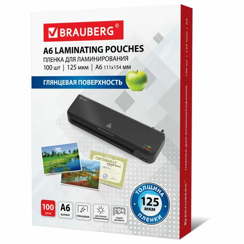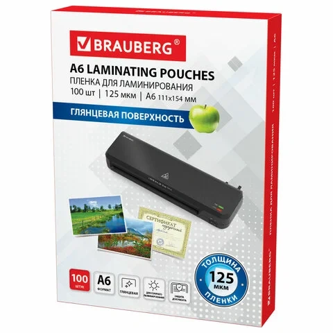 Пленка для ламинирования Brauberg 125мкм, 100шт, 111х154мм, глянцевая