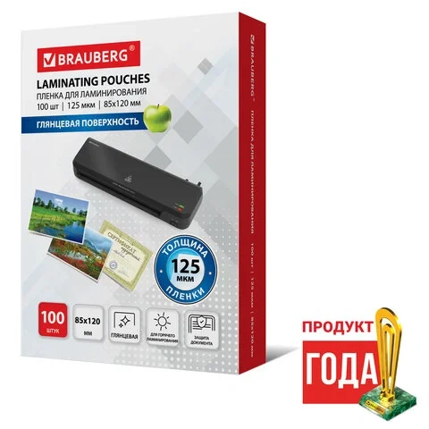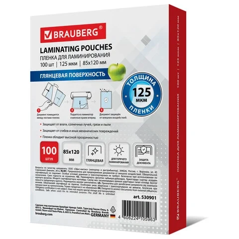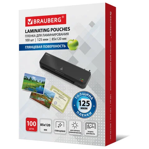 Пленка для ламинирования Brauberg 125мкм, 100шт, 85х120мм, глянцевая