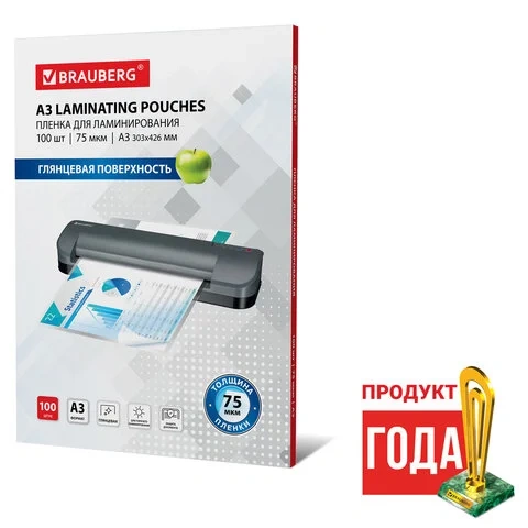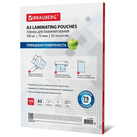 Пленка для ламинирования Brauberg 75мкм, 100шт, 303х426мм, глянцевая