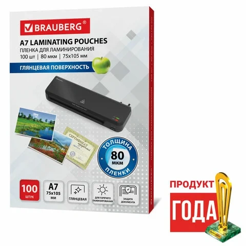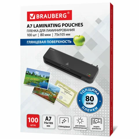 Пленка для ламинирования Brauberg 80мкм, 100шт, А7