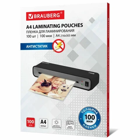 Пленка для ламинирования Brauberg Антистатик 100мкм, 100шт, А4