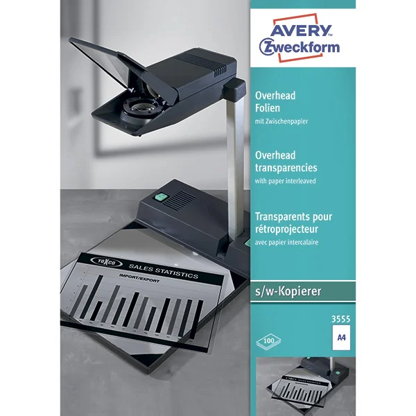 Пленка для проектора Avery Zweckform 3555, прозрачная, 210x297мм, 0.1мм, 100 листов