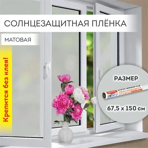 Пленка на окно самоклеящаяся статическая БЕЗ КЛЕЯ, солнцезащитная, 67,5х150 см, матовая, DASWERK, 60