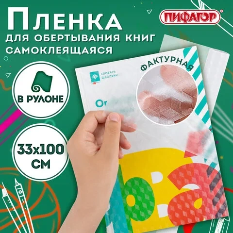 Универсальная самоклеящаяся пленка ПИФАГОР создаст презентабельный вид обложки любого бумажного изделия! Приобретайте товары для учебы по доступным ценам в нашем интернет-магазине!