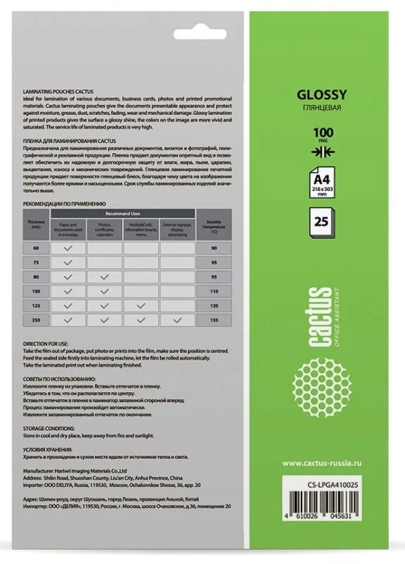 Пленка д/ламинирования OK 216х303, А4 (60 мик), матовая, 100 шт.