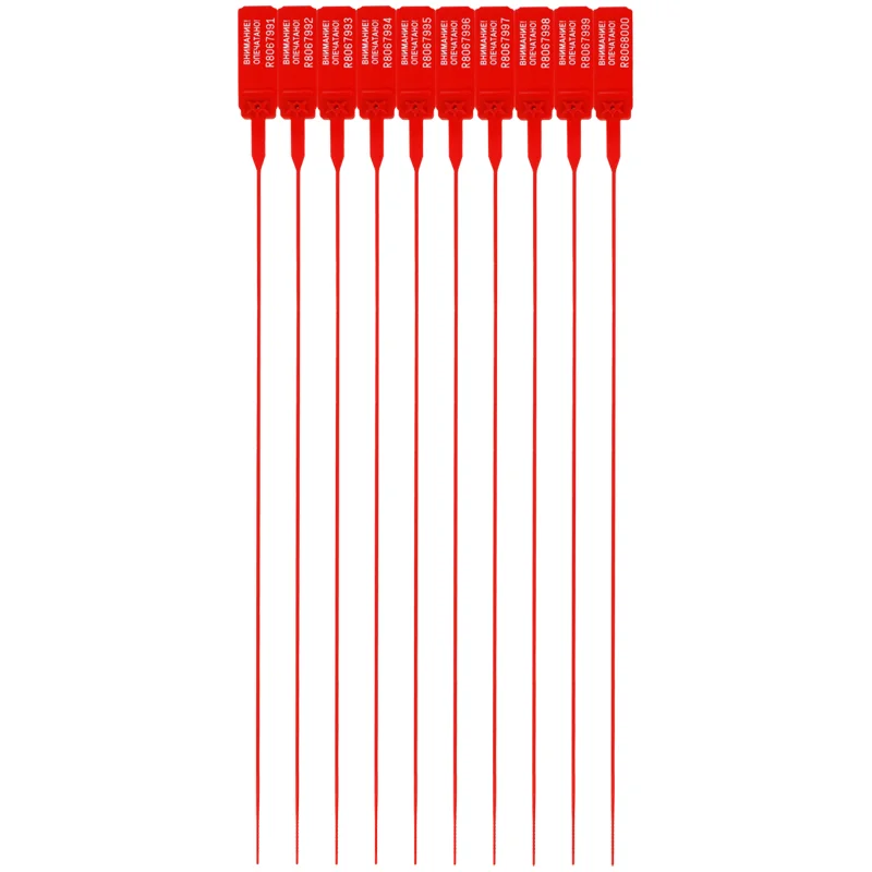 Пломба Альфа-МД пластиковая номерная, красная, 350мм, 10 шт