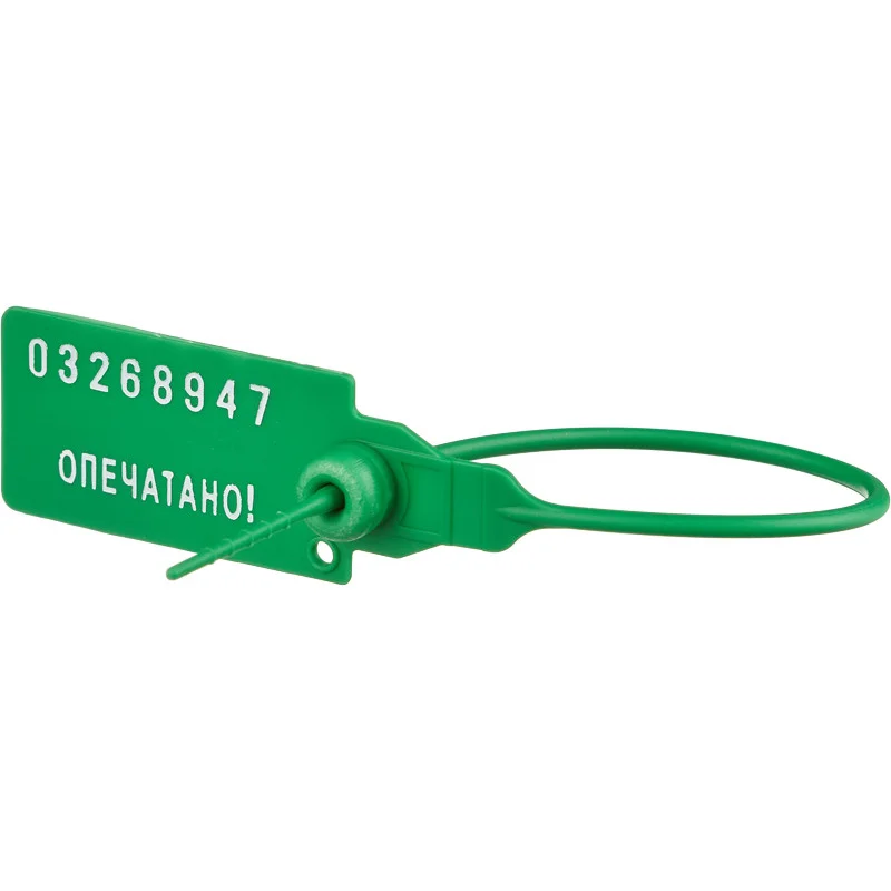 Пломба пластиковая номерная, одноразовая, 140 мм, зеленая, 50 шт/уп