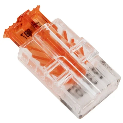 1. Свободные концы пломбировочной проволоки вставляются в отверстия пломбы и протягиваются на несколько сантиметров, после чего необходимо нажать на внутреннюю вставку, утопив ее в корпус пломбы до упора.
