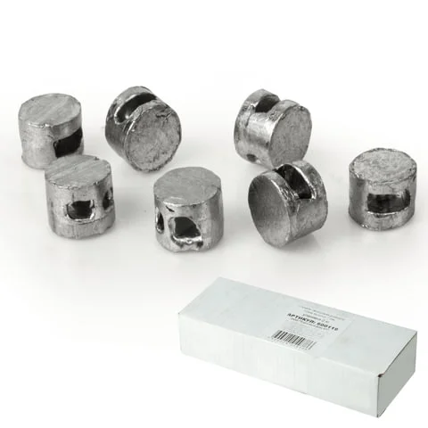 Свинцовые пломбы диаметром 10 мм соответствуют стандарту ГОСТ 30269-95. Применяются совместно с пломбировочной проволокой/шпагатом диаметром до 2 мм. Для этого в конструкции пломбы предусмотрено два отверстия. Навешивание свинцовой пломбы осуществляется посредством сжатия пломбиратором (600118). Свинец является мягким металлом, ввиду чего на нём остаётся чёткий оттиск пломбиратора. Упаковка содержит ориентировочно 420 - 440 шт.