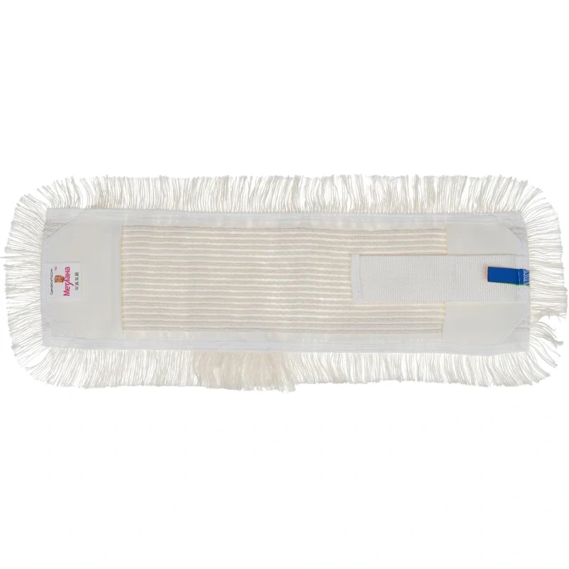 Конструкция без второго основания и удерживающих бортов по продольной стороне снижает плотность изделия и делает его удобным для компаний, применяющих ручной отжим. Вставки из полиэстера улучшают скольжение по полу, повышая эргономичность процесса уборки.