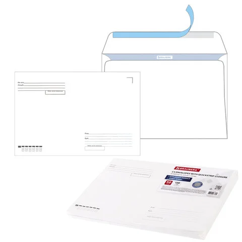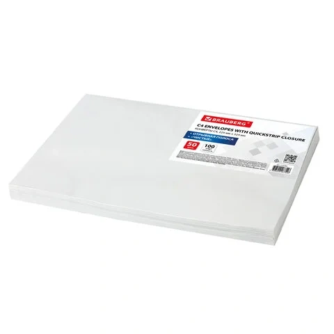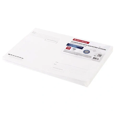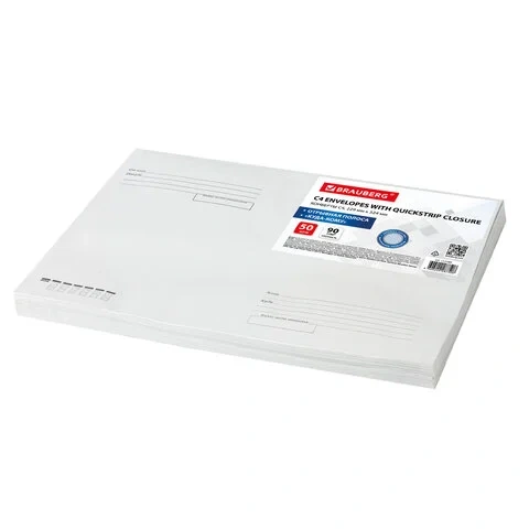 Конверт почтовый Brauberg С4, 229х324мм, белый, 90 г/м2, отры. лента, 50шт/уп