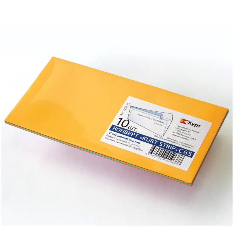 Конверт почтовый Курт С65 114*229мм, б/подсказа, б/окна, отр. лента, радуга (5цв.*2шт.)