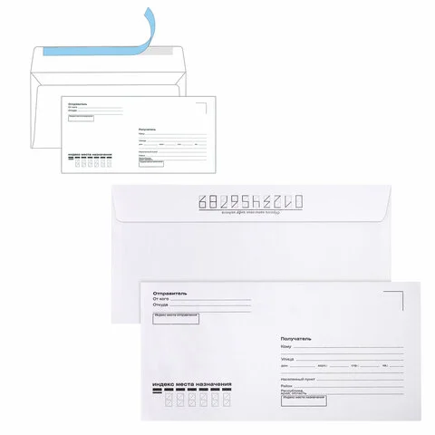 Конверт почтовый Brauberg Куда-Кому Е65, белый, 110х220мм, 100шт, отрывная лента