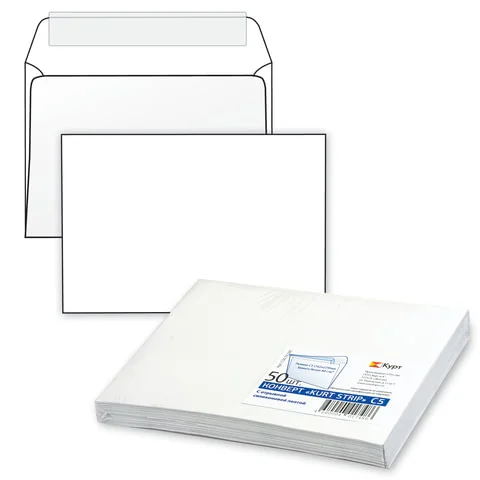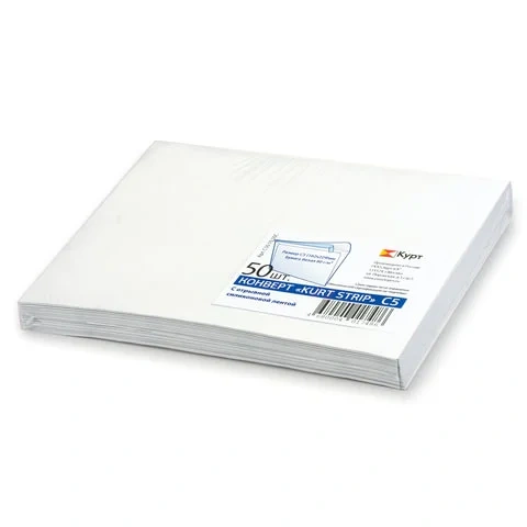 Конверт почтовый Курт С5 белый, 162х229мм, 80г/м2, 50шт, стрип