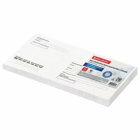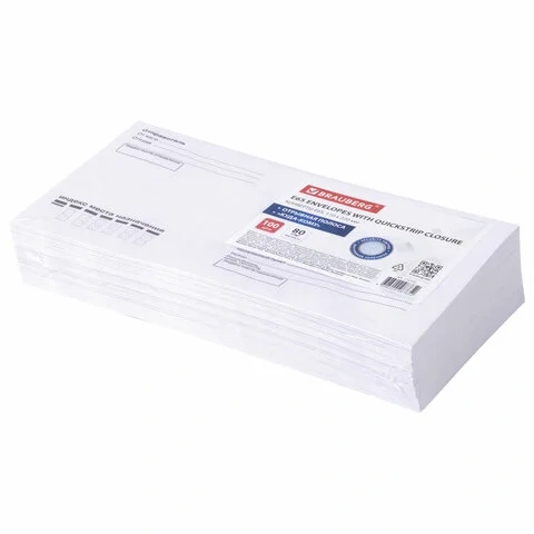 Конверт почтовый Brauberg E65, 110х220мм, стрип, 100шт/уп
