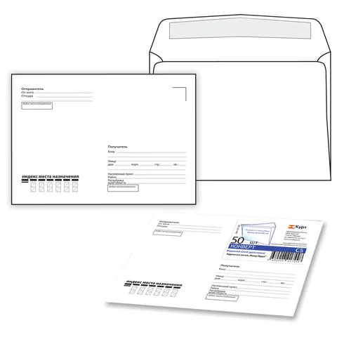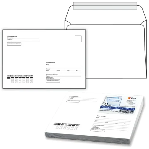 Конверт почтовый Курт С5 белый, 162х229мм, 80г/м2, 50шт, стрип, Куда-Кому