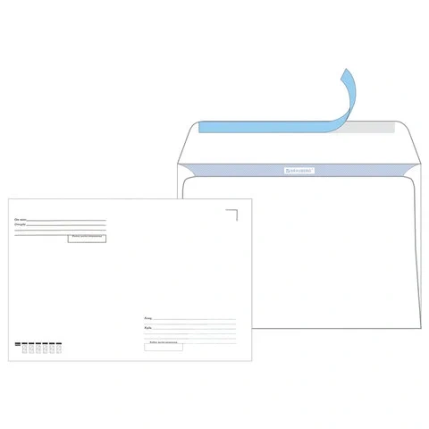 Конверт почтовый Brauberg С4, 229х324мм, 90 г/м2, Куда-Кому, клеевой слой, 50шт/уп