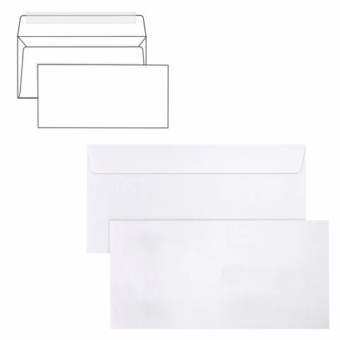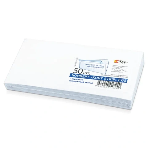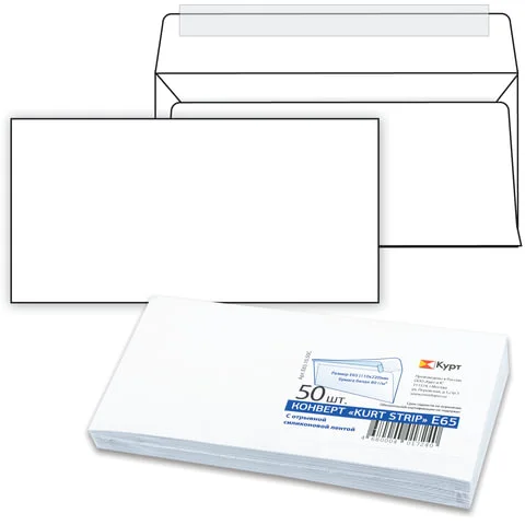 Конверт почтовый Курт Е65 белый, 110х220мм, 80г/м2, 50шт, стрип