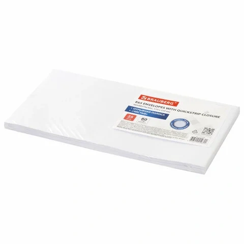 Конверт почтовый Brauberg Е65 белый, 110х220мм, 80г/м2, 25шт, стрип