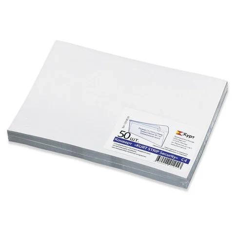 Конверт почтовый Курт С4 белый, 229х324мм, 90г/м2, 50шт, стрип, Security
