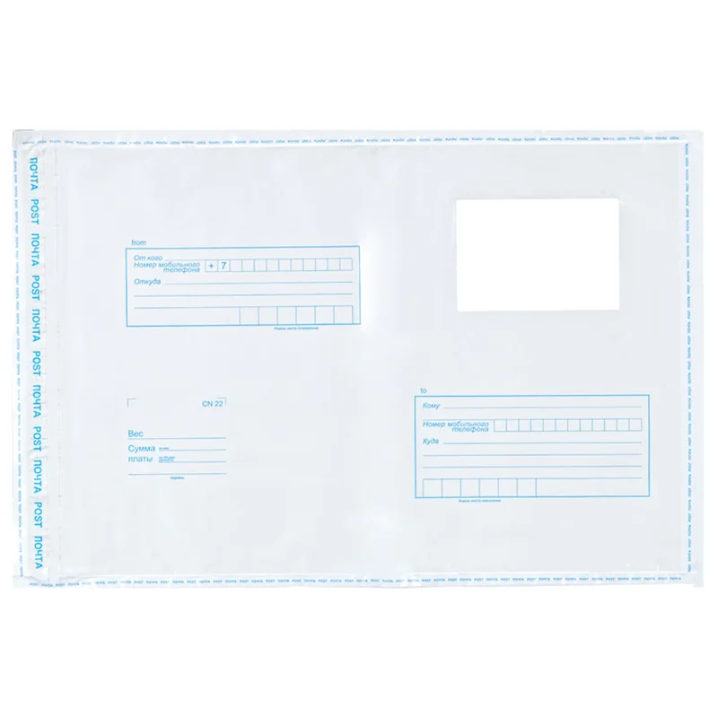 Пакет почтовый полиэтиленовый Курт И К B4, 250х353мм, 60мкм, стрип, 500шт/уп