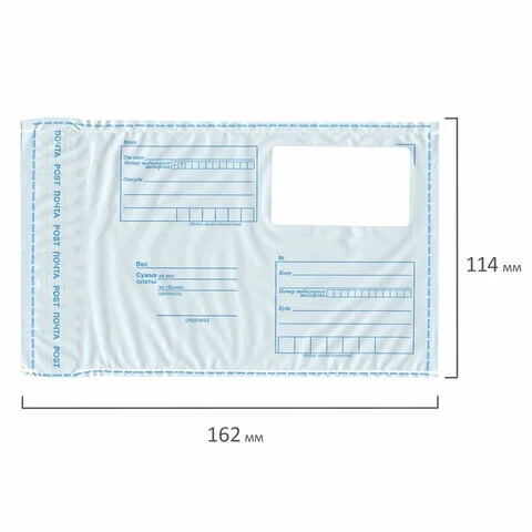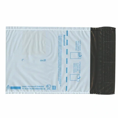Пакет почтовый полиэтиленовый Brauberg С6, 114х162мм, 60мкм, отрывная лента, 100шт/уп
