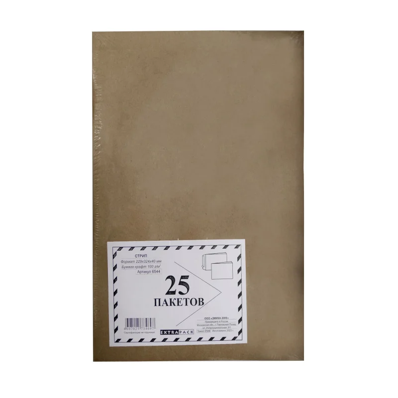 Пакет почтовый объемный Extrapack С4 крафт, 229х324мм, 120г/м2, 25шт, стрип