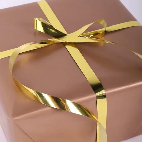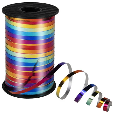 Лента упаковочная декоративная для шаров и подарков, мультицветный металлик, 5 мм х 250 м, ЗОЛОТАЯ С