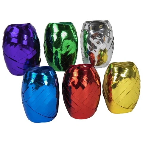 Лента упаковочная декоративная для подарков, матовый металл, 6 шт., 5 мм х 10 м, цвета ассорти, ЗОЛО
