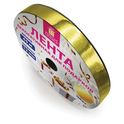 Лента упаковочная декоративная для подарков, металлик, 12 мм х 45 м, золотистая, ЗОЛОТАЯ СКАЗКА, 591