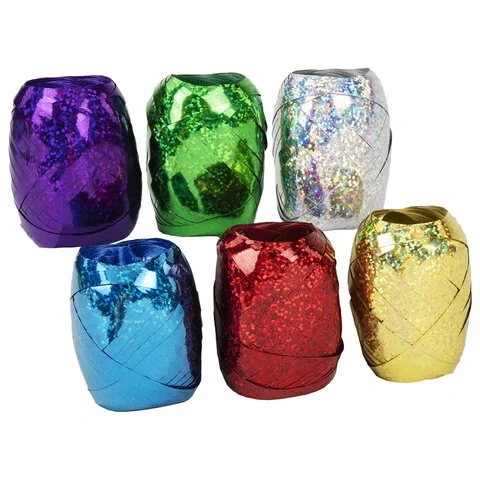 Лента упаковочная декоративная для подарков, голограф, 6 шт., 5 мм х 10 м, цвет ассорти, ЗОЛОТАЯ СКА