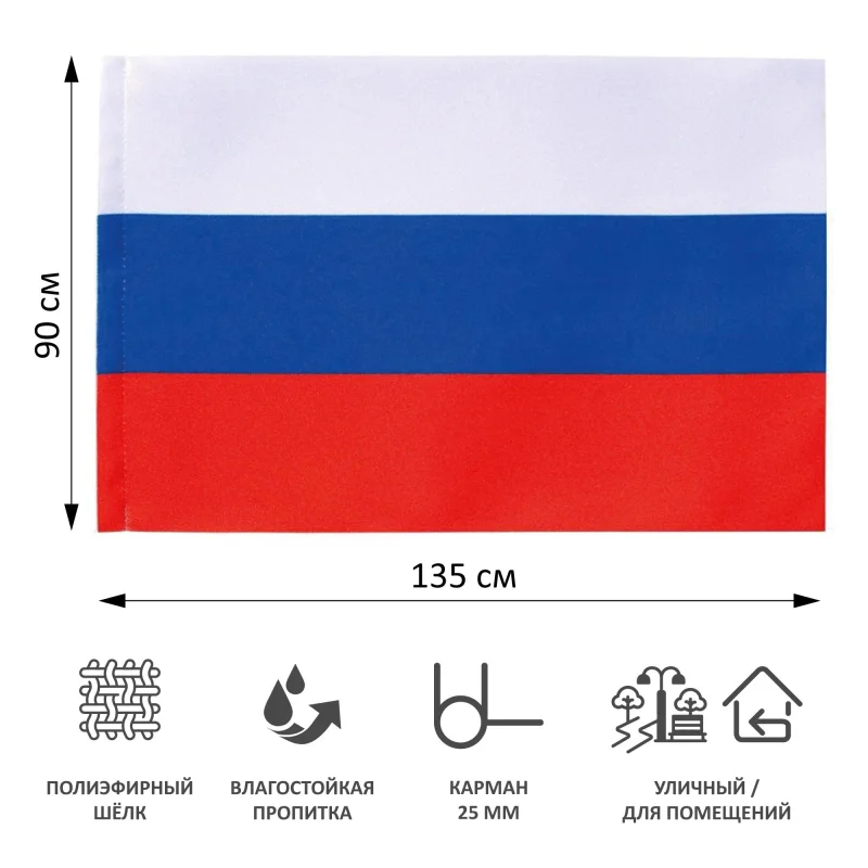 Флаг РФ 135х90 см, уличный, флажная сетка