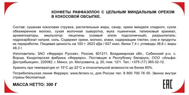 Набор конфет Raffaello Сердце-трансформер с цельным миндальным орехом в кокосовой обсыпке, 300г