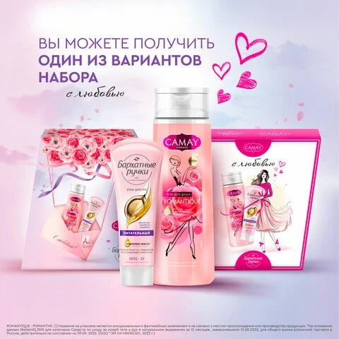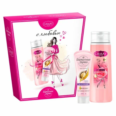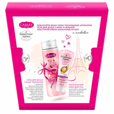 Подарочный набор: гель для душа CAMAY 250 мл + Крем для рук БАРХАТНЫЕ РУЧКИ питательный 80 мл