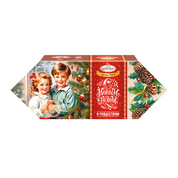 Коллекция вкуснейших конфет от фабрики им. Н.К.Крупской - исторические бренды, любимые многими поколениями. Небольшая упаковка в виде конфеты - идеальный выбор для небольшого, но очень приятного подарка. Набор сладостей в оригинальной упаковке, которые никого не оставит равнодушным. Внутри красивой упаковки сладости, приготовленные с добавлением сухофруктов, изюма и натуральной патоки. Новогодний подарок станет настоящим сюрпризом для каждого.