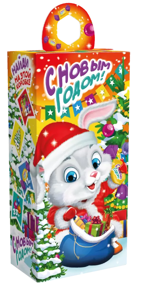 Подарочный набор на Новый год Сахарок - сказочный, добрый и очень вкусный подарок! Зайка под елочкой является одним из главных символов Нового года! Яркая, глянцевая упаковка несомненно порадует деток! Размер: 10х6х21 см