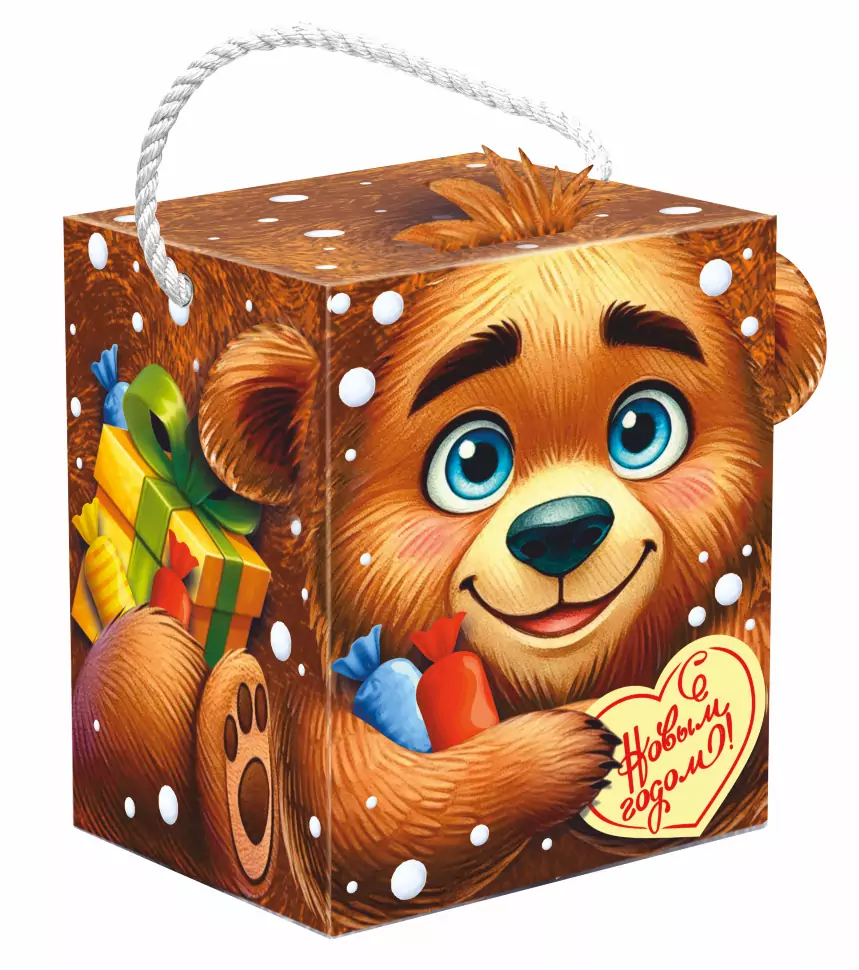 Этот новогодний подарок в виде милого медвежонка станет настоящим символом радости и счастья! На упаковке изображен очаровательный медвежонок с большими голубыми глазами, который держит в лапках яркие подарки. Снежинки вокруг создают атмосферу зимней сказки, а надпись «С Новым годом!» добавляет праздничного настроения. Такой подарок подарит тепло и радость, напоминая о чудесах, которые случаются в Новый год! Наши подарки укомплектованы самыми вкусными конфетами и сладостями от лучших кондитерских производителей России: фабрики имени Крупской, Славянка, Акконд, КДВ, Вольский кондитер, Азовская, Сладуница, Нева, Дымка, Невский кондитер, Лотте, MARS и др. Высокое качество которых соответствует всем необходимым нормативам, техническим условиям и ГОСТам РФ. Большой опыт и прямые поставки сладостей от ведущих отечественных кондитерских фабрик, позволяют нам создавать сладкие новогодние подарки, которые всегда приводят в восторг детей и взрослых!