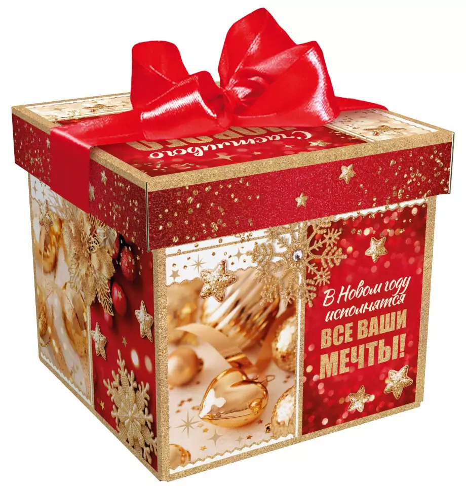 Сладкий новогодний подарок Праздник к нам приходит - шикарный и изысканный подарок! Нанесение уф-лака, блесток и ярко-красной атласной ленты, делают подарок сказочным. Подарите своим близким волшебный подарок, который непременно запомнится! Выразит Вашу любовь и признательность - маме, бабушке, детям, друзьям, учителю, воспитателю, коллегам и сотрудникам. Размер: 12,5х12,5х12 см. Наши подарки укомплектованы самыми вкусными конфетами и сладостями от лучших кондитерских производителей России: фабрики имени Крупской, Славянка, Акконд, КДВ, Вольский кондитер, Азовская, Сладуница, Нева, Дымка, Невский кондитер, Лотте, MARS и др.