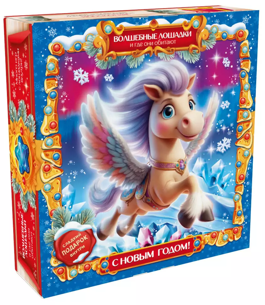 Подарочный набор на Новый год «Волшебная книга» — это не просто подарок, а настоящая путешествие в сказку для детей дошкольного возраста. Откройте обложку — и перед маленьким исследователем раскроется волшебный мир загадок, ребусов и приключений. Лошадь - символ 2026 года. Наши подарки укомплектованы самыми вкусными конфетами и сладостями от лучших кондитерских производителей России: фабрики имени Крупской, Славянка, Акконд, КДВ, Вольский кондитер, Азовская, Сладуница, Нева, Дымка, Невский кондитер, Лотте, MARS и др.