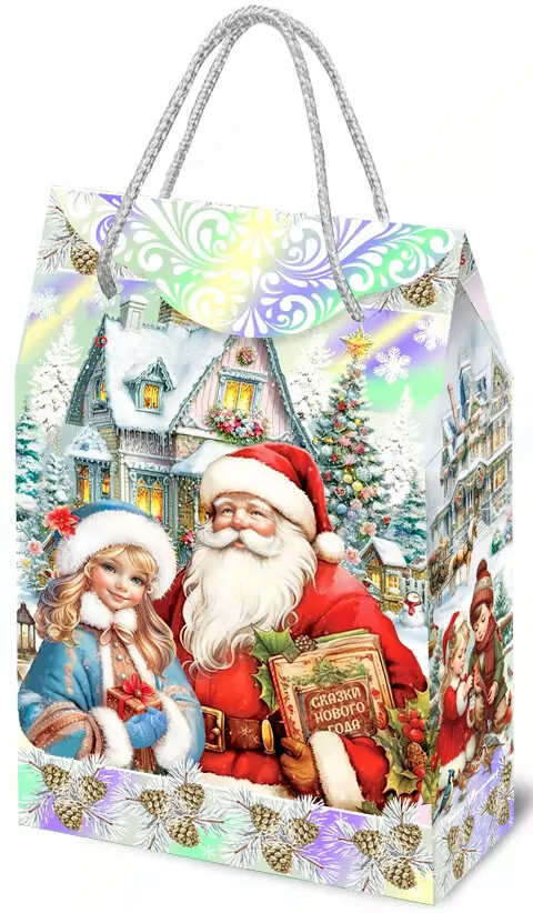 Сладкий подарочный набор на Новый год Волшебство - это роскошный, стильный подарок для самых любимых. Дедушка Мороз со Снегурочкой на фоне заснеженного города - создают неповторимую атмосферу праздника. Великолепный орнамент и серебряная ручка придает изысканность подарку. Эффект многоцветного тиснения - непременно оценят дети и взрослые. Упаковка металлизированная, вся переливается и создает то самое Новогоднее настроение! Наши подарки укомплектованы самыми вкусными конфетами и сладостями от лучших кондитерских производителей России: фабрики имени Крупской, Славянка, Акконд, КДВ, Вольский кондитер, Азовская, Сладуница, Нева, Дымка, Невский кондитер, Лотте, MARS и др.