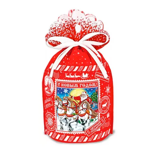 Сладкий новогодний подарок Мешочек Северная почта - яркий, красивый, текстильный мешочек, наполненный самыми вкусными конфетами! Мешочек с изысканным орнаментом и изображением Дедушки Мороза, который мчится на встречу с детьми! Подарок Северная почта - выражение новогодней теплоты и признательности: ребенку, маме, бабушке, коллеге, сотрудникам, учителю, воспитателю. Волшебный, сказочный, универсальный подарок! Мешочек комплектуется белой атласной лентой. Наши подарки укомплектованы самыми вкусными конфетами и сладостями от лучших кондитерских производителей России: фабрики имени Крупской, Славянка, Акконд, КДВ, Вольский кондитер, Азовская, Сладуница, Cладкий орешек, Коломенское, Нева, Дымка, Невский кондитер, Лотте, MARS и др. Высокое качество которых соответствует всем необходимым нормативам и ГОСТам РФ. Большой опыт и прямые поставки сладостей от ведущих отечественных кондитерских фабрик, позволяют нам создавать сладкие новогодние подарки, которые всегда приводят в восторг детей и взрослых! Все новогодние подарки сертифицированы. Декларации соответствия опубликованы на сайте и предоставляются с поставкой новогодних подарков. В каждый подарок мы вкладываем информацию с указанием состава сладкого набора, массой, условиями хранения, телефоном и адресом производства, датой упаковки. Обращаем ваше внимание, что в составе подарка возможна частичная замена на схожие по цене и вкусу конфеты. Желаем Вам сказочного и волшебного Нового 2026 года!