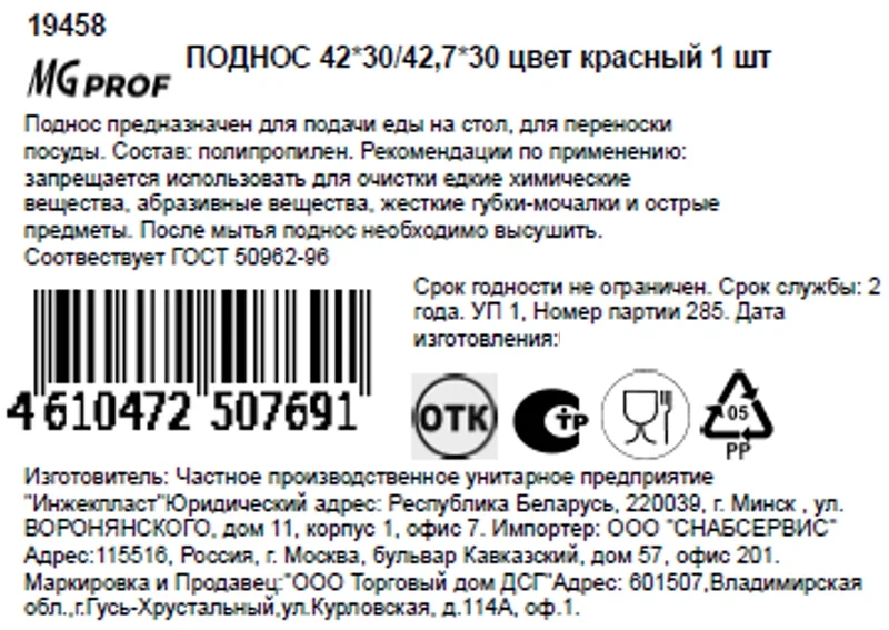 Поднос для фастфуда Mgprof красный, 42 x 30см-42.7 x 30см