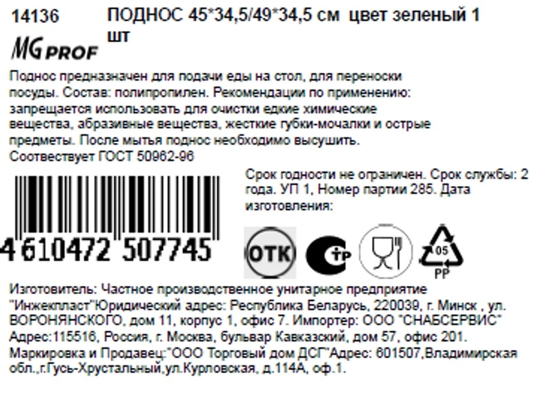 Поднос для фастфуда Mgprof темно-зеленый, 45 x 34.5-49 x 34.5см предназначен для подачи еды на стол, для переноски посуды. Модель выполнена из полипропилена, который обладает прочностью и долговечностью. Он устойчив к перепадам температур, ультрафиолету, воздействию влаги и пыли. Он полностью соответствует стандартным размерам и используется не только на домашней кухне, но и в профессиональном общепите.