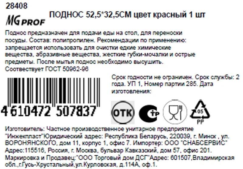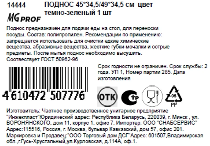 Поднос Mgprof зеленый, 52.5 x 32.5см