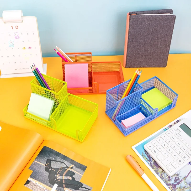 Подставка Deli E9154 3отд. для письменных принадлежностей 80x80x90мм ассорти металл сетка