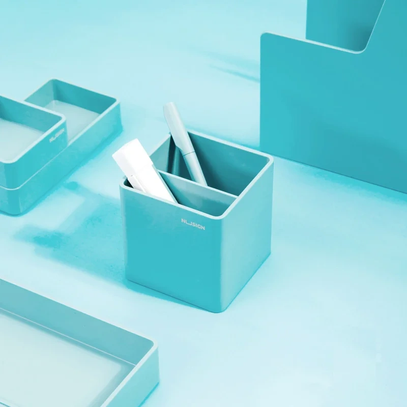 Подставка Deli ENS011blue Nusign 2отд. для письменных принадлежностей 84х84х86мм синий пластик