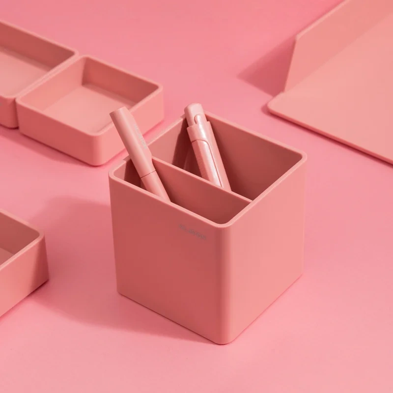 Подставка Deli ENS011PINK Nusign 2отд. для письменных принадлежностей 84х84х86мм розовый пластик